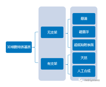 3D細胞培養(yǎng)基質(zhì),首先根據(jù)有沒有支架分成兩大類,每類又有細分的技術和來源特點:
