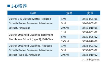 全面的產(chǎn)品線,多方驗證的優(yōu)異品質(zhì),R&D Systems的Cultrex?BME基質(zhì)膠產(chǎn)品線必能滿足您的3D細胞培養(yǎng)所需,我們將以專業(yè)的產(chǎn)品和服務助力您的2D,3D細胞培養(yǎng),組織化培養(yǎng),干細胞維持和分化等實驗。