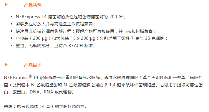新品發(fā)布:NEBExpress? T4 溶菌酶