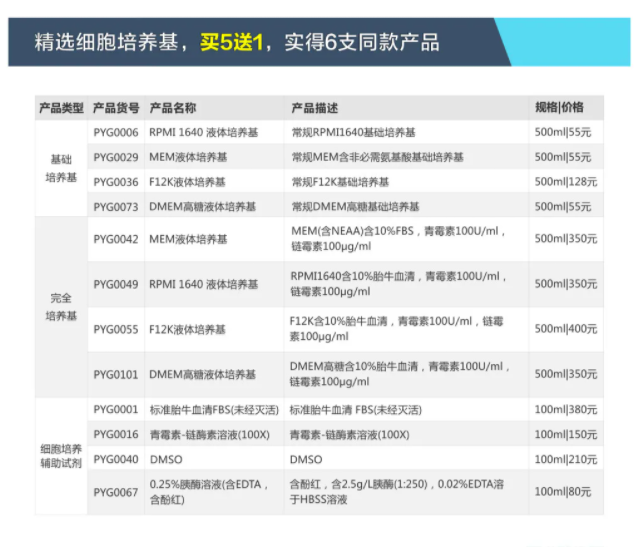 ? 精選細(xì)胞培養(yǎng)基,買5送1,實(shí)得6支同款產(chǎn)品。